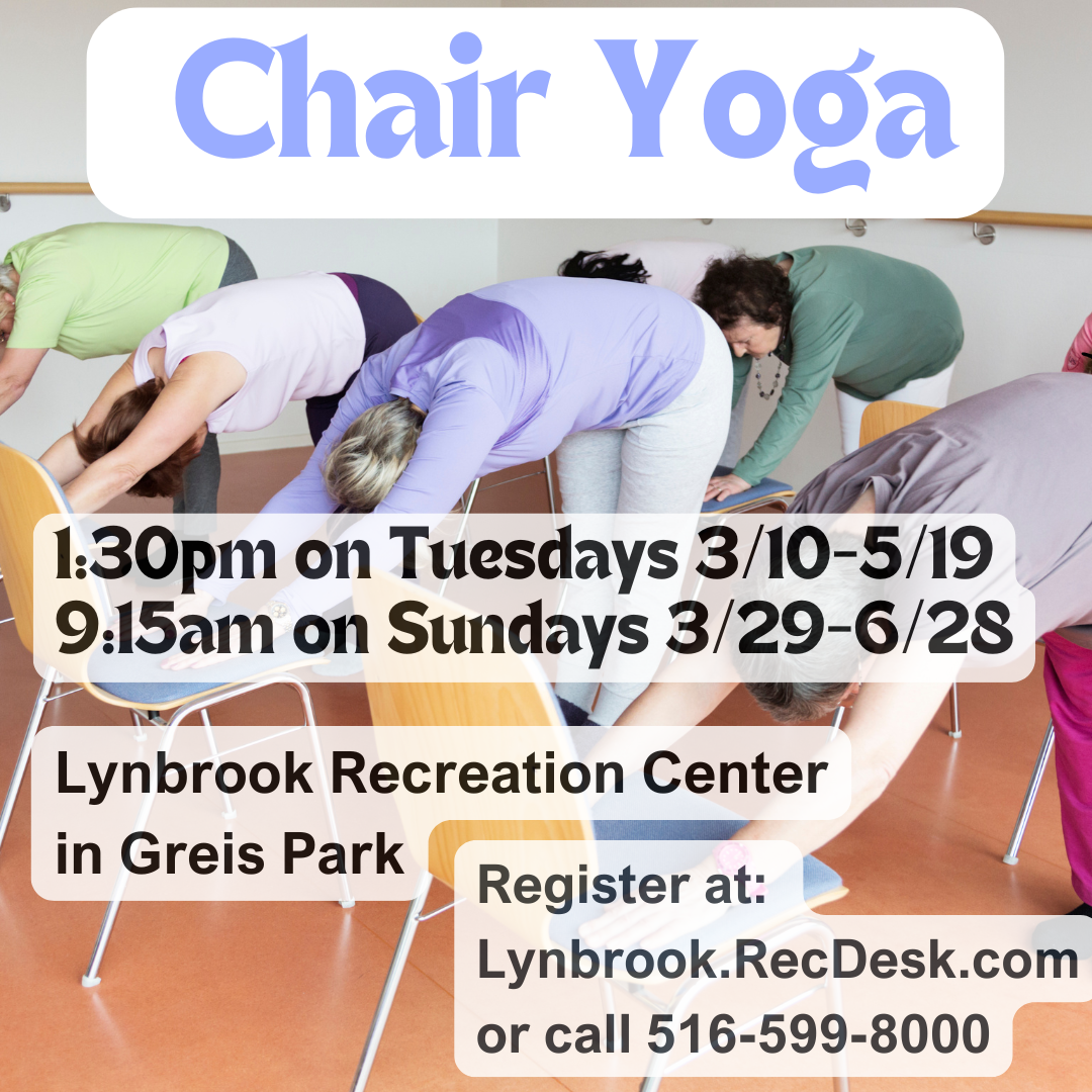 Registration is NOW OPEN for Chair Yoga at Lynbrook Recreation Center. Sign up at www.lynbrook.recdesk.com